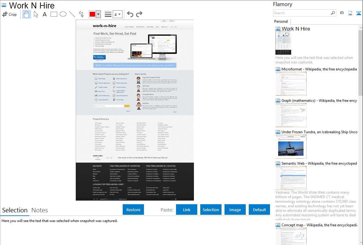 Flamory provides advanced bookmarking for Work N Hire. It captures screen, selection, text on the page and other context. You can find this bookmark later using search by page content or looking through thumbnail list.