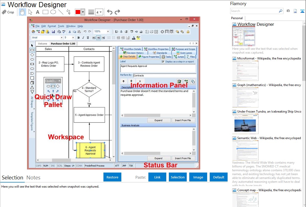 Flamory helps you capture and store screenshots from Workflow Designer by pressing a single hotkey. It will be saved to a history, so you can continue doing your tasks without interruptions. Later, you can edit the screenshot: crop, resize, add labels and highlights. After that, you can paste the screenshot into any other document or e-mail message.