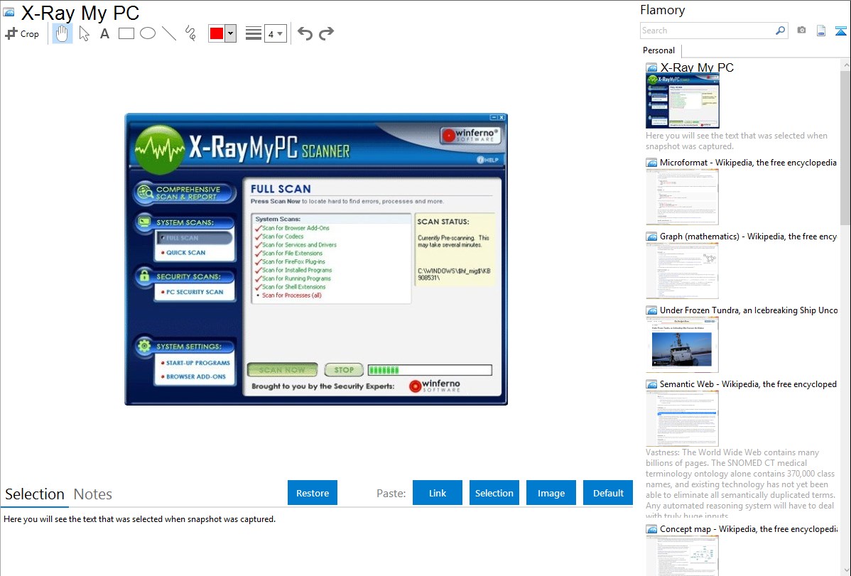 Flamory helps you capture and store screenshots from X-Ray My PC by pressing a single hotkey. It will be saved to a history, so you can continue doing your tasks without interruptions. Later, you can edit the screenshot: crop, resize, add labels and highlights. After that, you can paste the screenshot into any other document or e-mail message.