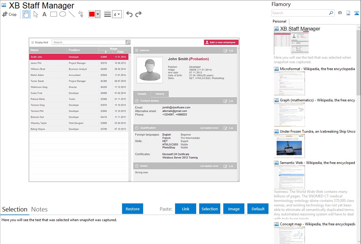Flamory helps you capture and store screenshots from XB Staff Manager by pressing a single hotkey. It will be saved to a history, so you can continue doing your tasks without interruptions. Later, you can edit the screenshot: crop, resize, add labels and highlights. After that, you can paste the screenshot into any other document or e-mail message.