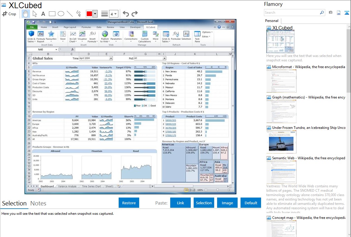Flamory helps you capture and store screenshots from XLCubed by pressing a single hotkey. It will be saved to a history, so you can continue doing your tasks without interruptions. Later, you can edit the screenshot: crop, resize, add labels and highlights. After that, you can paste the screenshot into any other document or e-mail message.