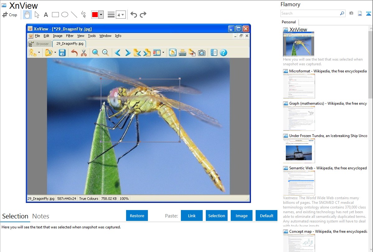 Flamory helps you capture and store screenshots from XnView by pressing a single hotkey. It will be saved to a history, so you can continue doing your tasks without interruptions. Later, you can edit the screenshot: crop, resize, add labels and highlights. After that, you can paste the screenshot into any other document or e-mail message.