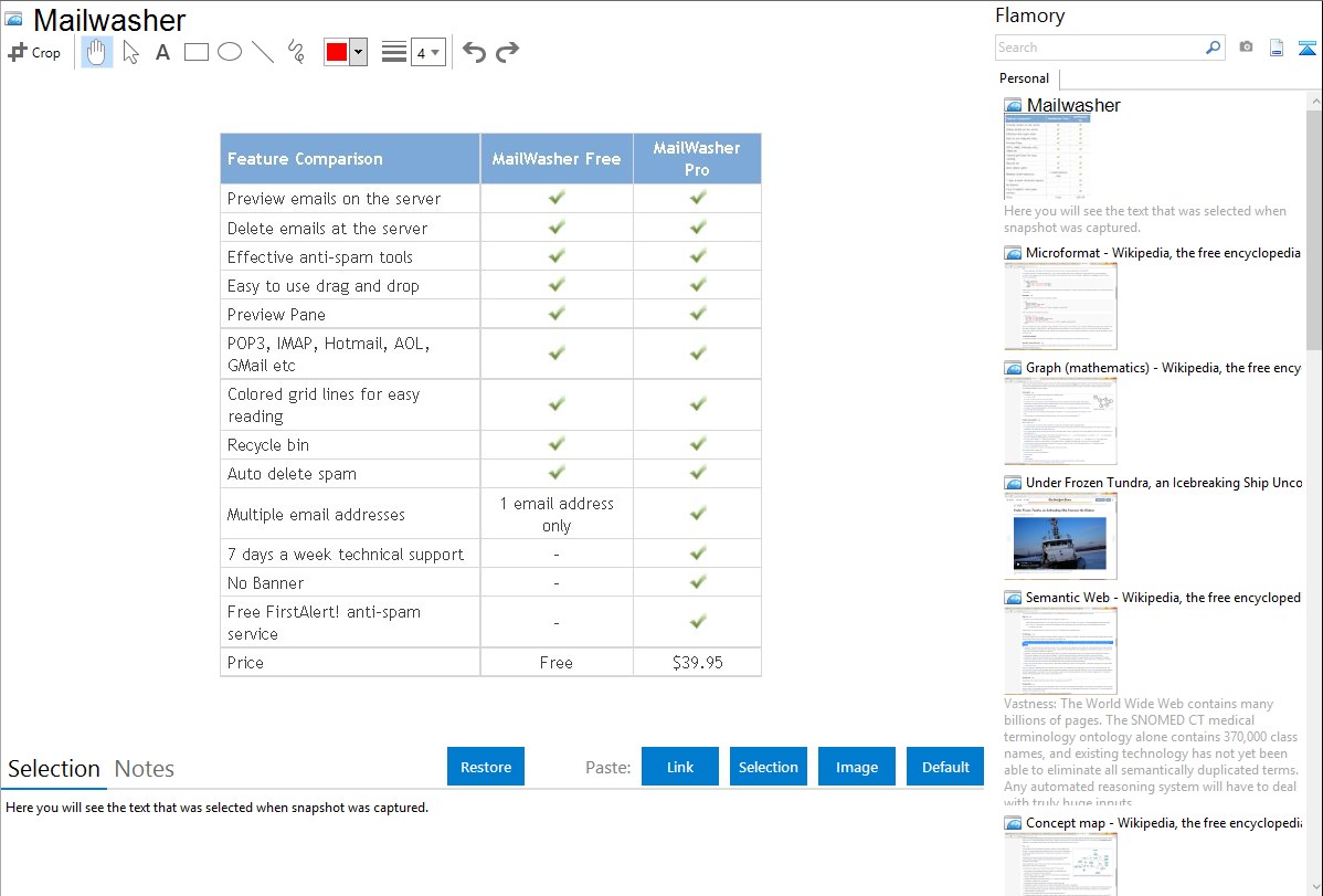 Flamory helps you capture and store screenshots from Mailwasher by pressing a single hotkey. It will be saved to a history, so you can continue doing your tasks without interruptions. Later, you can edit the screenshot: crop, resize, add labels and highlights. After that, you can paste the screenshot into any other document or e-mail message.