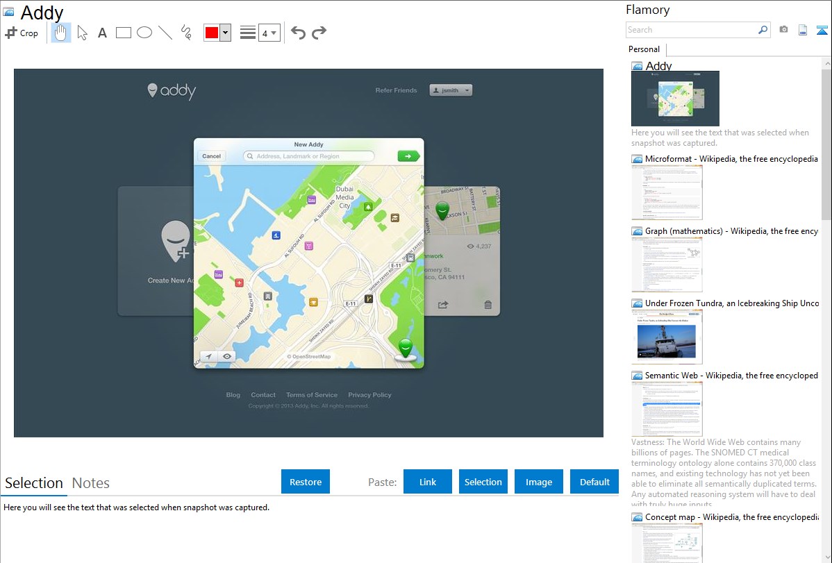 Flamory helps you capture and store screenshots from Addy by pressing a single hotkey. It will be saved to a history, so you can continue doing your tasks without interruptions. Later, you can edit the screenshot: crop, resize, add labels and highlights. After that, you can paste the screenshot into any other document or e-mail message.