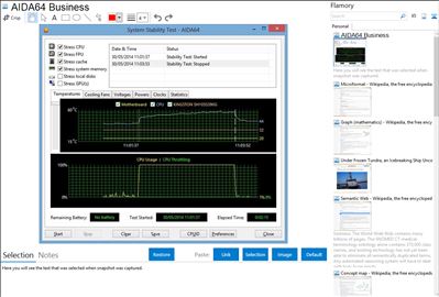 Flamory helps you capture and store screenshots from AIDA64 Business by pressing a single hotkey. It will be saved to a history, so you can continue doing your tasks without interruptions. Later, you can edit the screenshot: crop, resize, add labels and highlights. After that, you can paste the screenshot into any other document or e-mail message.