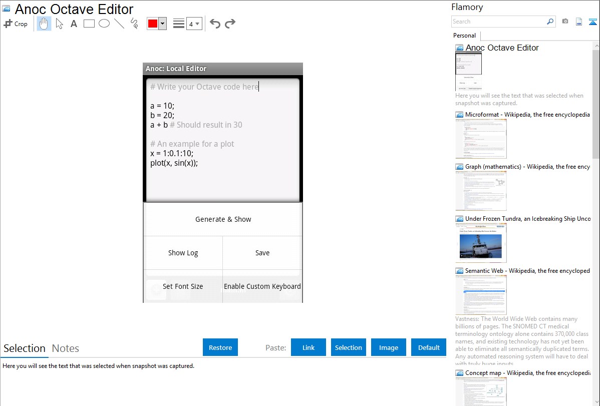 Flamory provides advanced bookmarking for Anoc Octave Editor. It captures screen, selection, text on the page and other context. You can find this bookmark later using search by page content or looking through thumbnail list.
