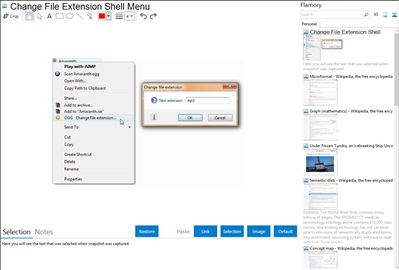 Flamory helps you capture and store screenshots from Change File Extension Shell Menu by pressing a single hotkey. It will be saved to a history, so you can continue doing your tasks without interruptions. Later, you can edit the screenshot: crop, resize, add labels and highlights. After that, you can paste the screenshot into any other document or e-mail message.