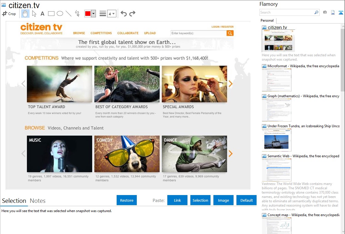 Flamory helps you capture and store screenshots from citizen.tv by pressing a single hotkey. It will be saved to a history, so you can continue doing your tasks without interruptions. Later, you can edit the screenshot: crop, resize, add labels and highlights. After that, you can paste the screenshot into any other document or e-mail message.