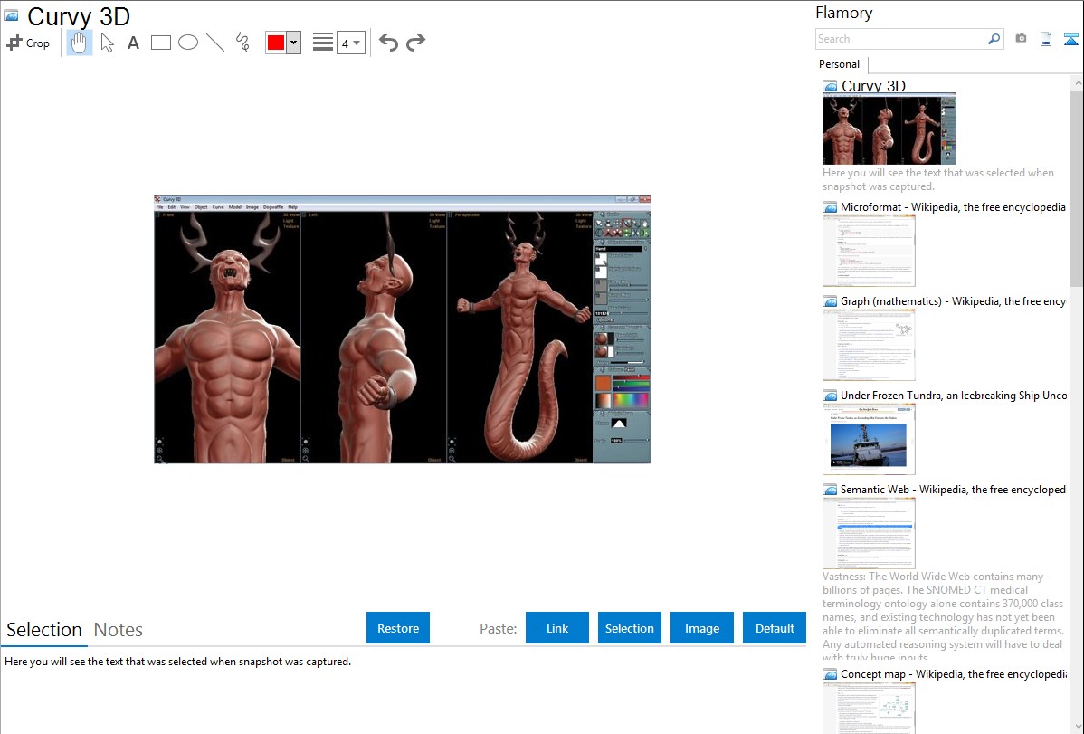 Flamory helps you capture and store screenshots from Curvy 3D by pressing a single hotkey. It will be saved to a history, so you can continue doing your tasks without interruptions. Later, you can edit the screenshot: crop, resize, add labels and highlights. After that, you can paste the screenshot into any other document or e-mail message.
