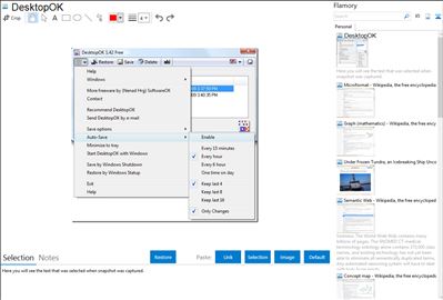 Flamory helps you capture and store screenshots from DesktopOK by pressing a single hotkey. It will be saved to a history, so you can continue doing your tasks without interruptions. Later, you can edit the screenshot: crop, resize, add labels and highlights. After that, you can paste the screenshot into any other document or e-mail message.