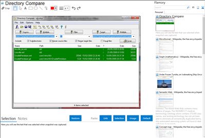 Flamory helps you capture and store screenshots from Directory Compare by pressing a single hotkey. It will be saved to a history, so you can continue doing your tasks without interruptions. Later, you can edit the screenshot: crop, resize, add labels and highlights. After that, you can paste the screenshot into any other document or e-mail message.