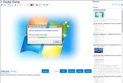 Flamory helps you capture and store screenshots from Doctor Dump by pressing a single hotkey. It will be saved to a history, so you can continue doing your tasks without interruptions. Later, you can edit the screenshot: crop, resize, add labels and highlights. After that, you can paste the screenshot into any other document or e-mail message.
