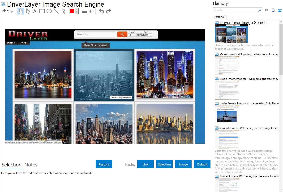 Flamory helps you capture and store screenshots from DriverLayer Image Search Engine by pressing a single hotkey. It will be saved to a history, so you can continue doing your tasks without interruptions. Later, you can edit the screenshot: crop, resize, add labels and highlights. After that, you can paste the screenshot into any other document or e-mail message.