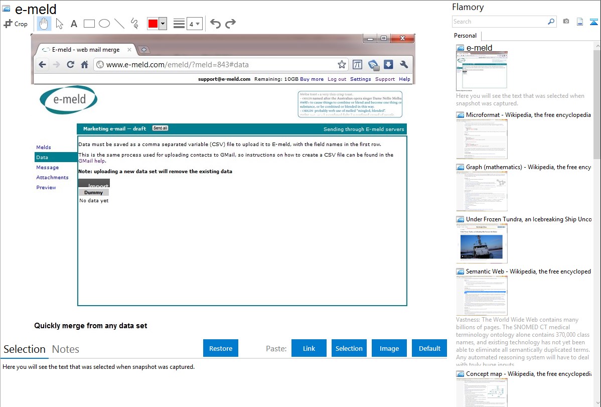 Flamory helps you capture and store screenshots from e-meld by pressing a single hotkey. It will be saved to a history, so you can continue doing your tasks without interruptions. Later, you can edit the screenshot: crop, resize, add labels and highlights. After that, you can paste the screenshot into any other document or e-mail message.