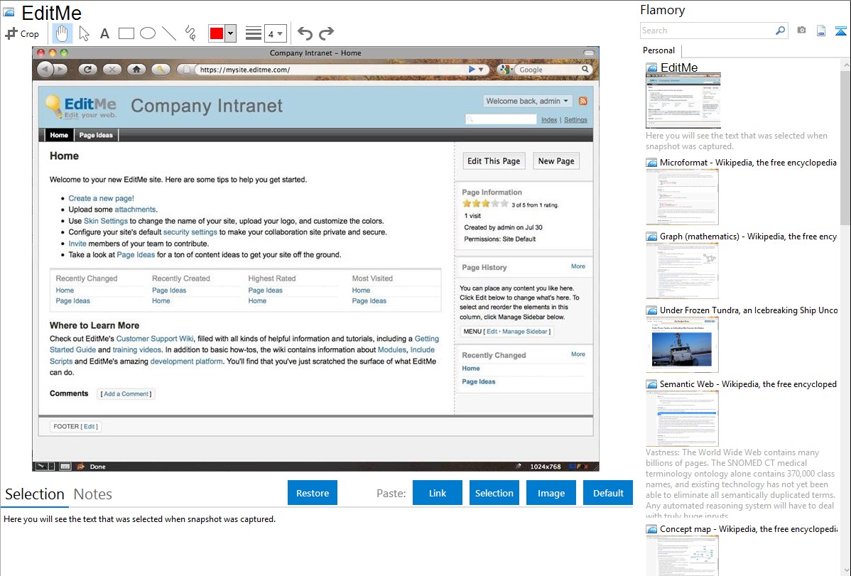 Flamory helps you capture and store screenshots from EditMe by pressing a single hotkey. It will be saved to a history, so you can continue doing your tasks without interruptions. Later, you can edit the screenshot: crop, resize, add labels and highlights. After that, you can paste the screenshot into any other document or e-mail message.