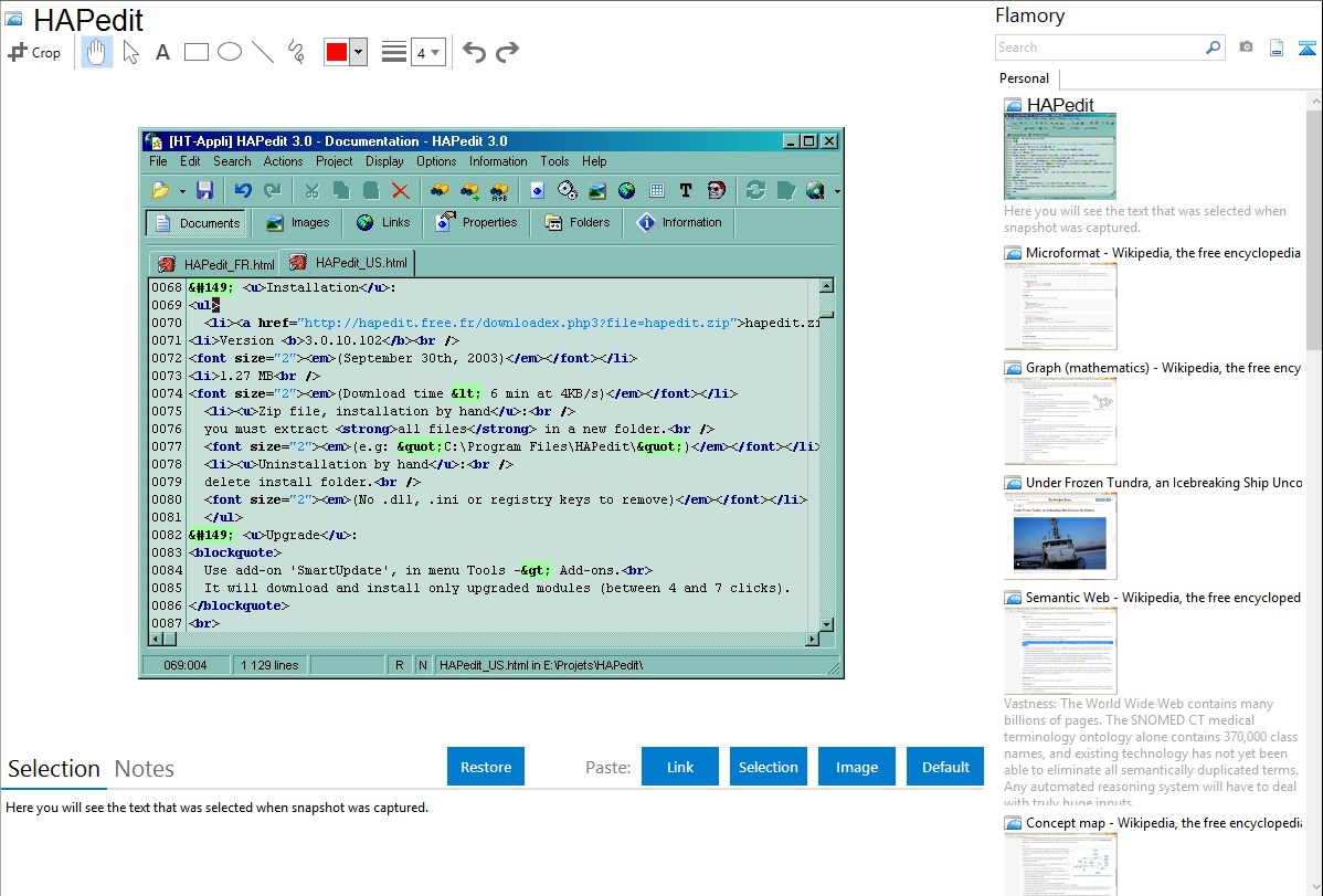 Flamory helps you capture and store screenshots from HAPedit by pressing a single hotkey. It will be saved to a history, so you can continue doing your tasks without interruptions. Later, you can edit the screenshot: crop, resize, add labels and highlights. After that, you can paste the screenshot into any other document or e-mail message.