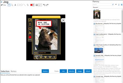 Flamory helps you capture and store screenshots from Jing by pressing a single hotkey. It will be saved to a history, so you can continue doing your tasks without interruptions. Later, you can edit the screenshot: crop, resize, add labels and highlights. After that, you can paste the screenshot into any other document or e-mail message.