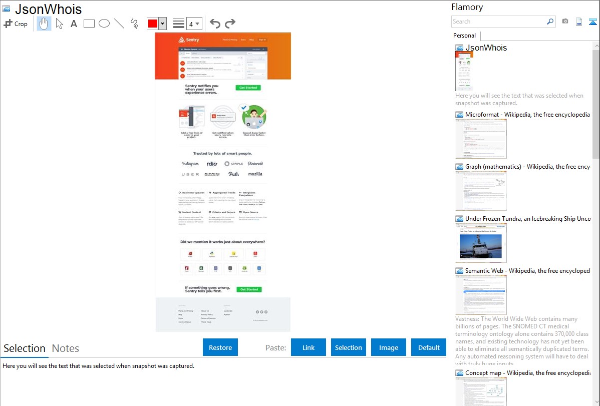 • Automatically copy selected text from JsonWhois and save it to Flamory history