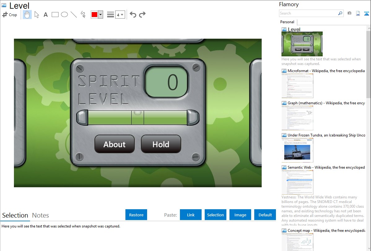 Flamory helps you capture and store screenshots from Level by pressing a single hotkey. It will be saved to a history, so you can continue doing your tasks without interruptions. Later, you can edit the screenshot: crop, resize, add labels and highlights. After that, you can paste the screenshot into any other document or e-mail message.