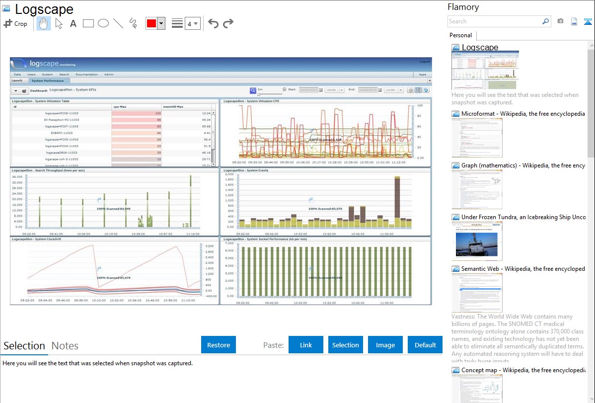 Flamory helps you capture and store screenshots from Logscape by pressing a single hotkey. It will be saved to a history, so you can continue doing your tasks without interruptions. Later, you can edit the screenshot: crop, resize, add labels and highlights. After that, you can paste the screenshot into any other document or e-mail message.