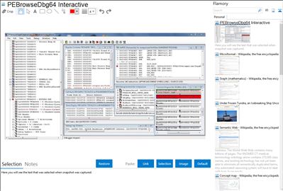 Flamory helps you capture and store screenshots from PEBrowseDbg64 Interactive by pressing a single hotkey. It will be saved to a history, so you can continue doing your tasks without interruptions. Later, you can edit the screenshot: crop, resize, add labels and highlights. After that, you can paste the screenshot into any other document or e-mail message.