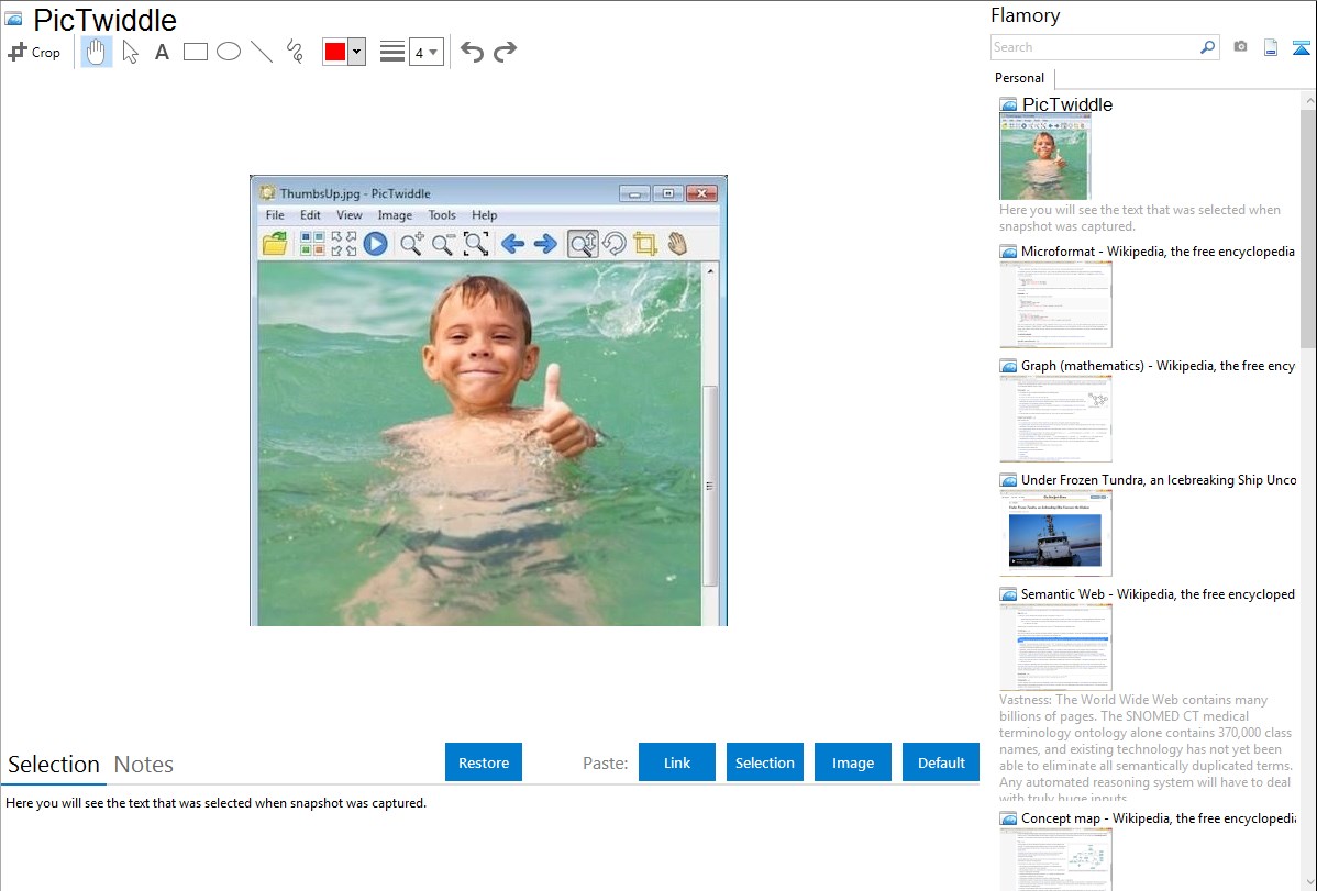 Flamory helps you capture and store screenshots from PicTwiddle by pressing a single hotkey. It will be saved to a history, so you can continue doing your tasks without interruptions. Later, you can edit the screenshot: crop, resize, add labels and highlights. After that, you can paste the screenshot into any other document or e-mail message.