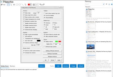 Pitaschio is a freeware which makes it convenient to use Microsoft Windows. Pitaschio includes a large number of useful functions mainly related to mouse operation and window management. This is a essential tool to use windows efficiently.