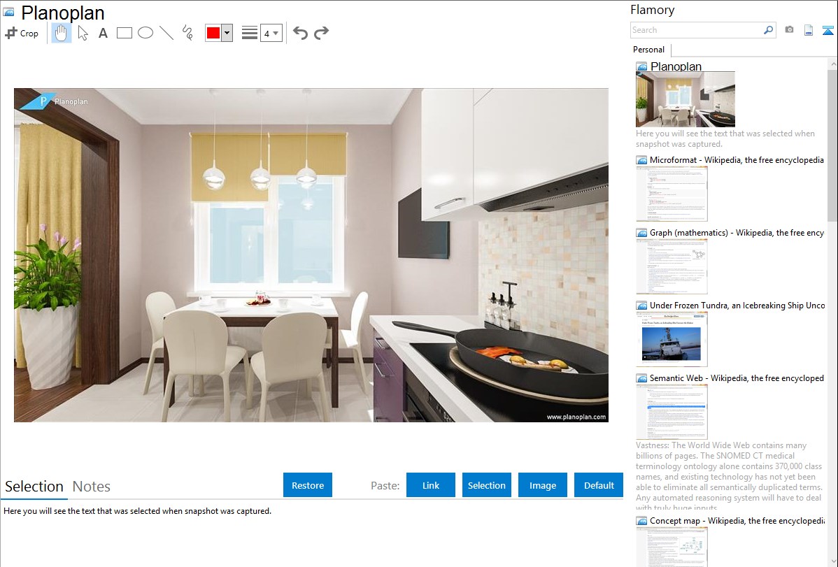 Flamory helps you capture and store screenshots from Planoplan by pressing a single hotkey. It will be saved to a history, so you can continue doing your tasks without interruptions. Later, you can edit the screenshot: crop, resize, add labels and highlights. After that, you can paste the screenshot into any other document or e-mail message.