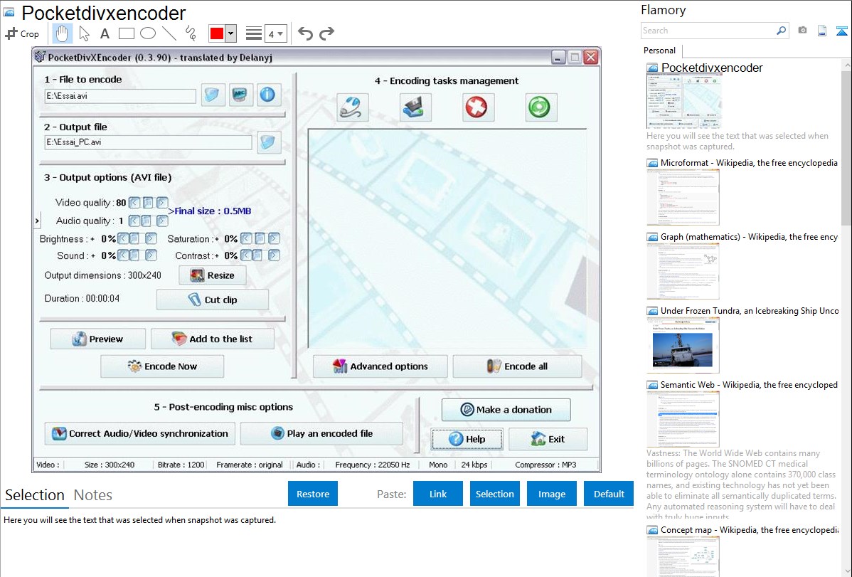 Here is how Pocketdivxencoder snapshot can look like. Get Flamory and try this on your computer.