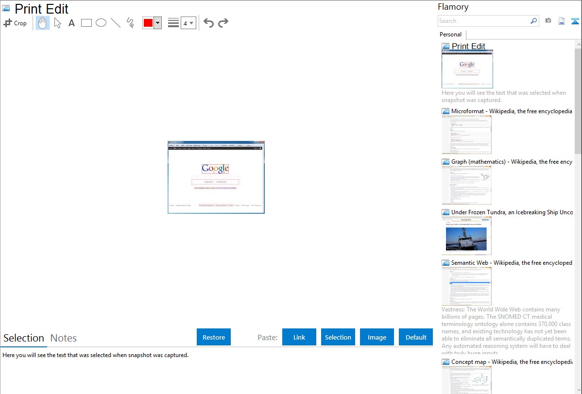 Flamory helps you capture and store screenshots from Print Edit by pressing a single hotkey. It will be saved to a history, so you can continue doing your tasks without interruptions. Later, you can edit the screenshot: crop, resize, add labels and highlights. After that, you can paste the screenshot into any other document or e-mail message.