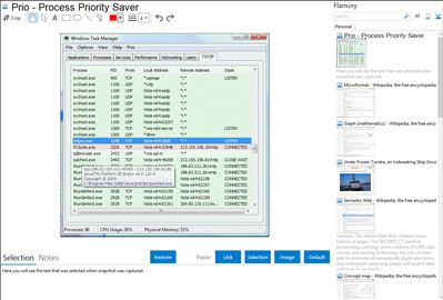 Flamory helps you capture and store screenshots from Prio - Process Priority Saver by pressing a single hotkey. It will be saved to a history, so you can continue doing your tasks without interruptions. Later, you can edit the screenshot: crop, resize, add labels and highlights. After that, you can paste the screenshot into any other document or e-mail message.