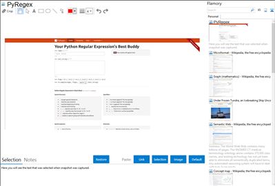 Flamory helps you capture and store screenshots from PyRegex by pressing a single hotkey. It will be saved to a history, so you can continue doing your tasks without interruptions. Later, you can edit the screenshot: crop, resize, add labels and highlights. After that, you can paste the screenshot into any other document or e-mail message.