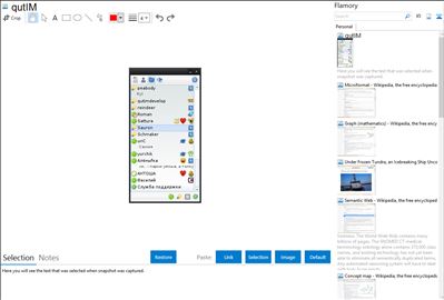 Flamory helps you capture and store screenshots from qutIM by pressing a single hotkey. It will be saved to a history, so you can continue doing your tasks without interruptions. Later, you can edit the screenshot: crop, resize, add labels and highlights. After that, you can paste the screenshot into any other document or e-mail message.