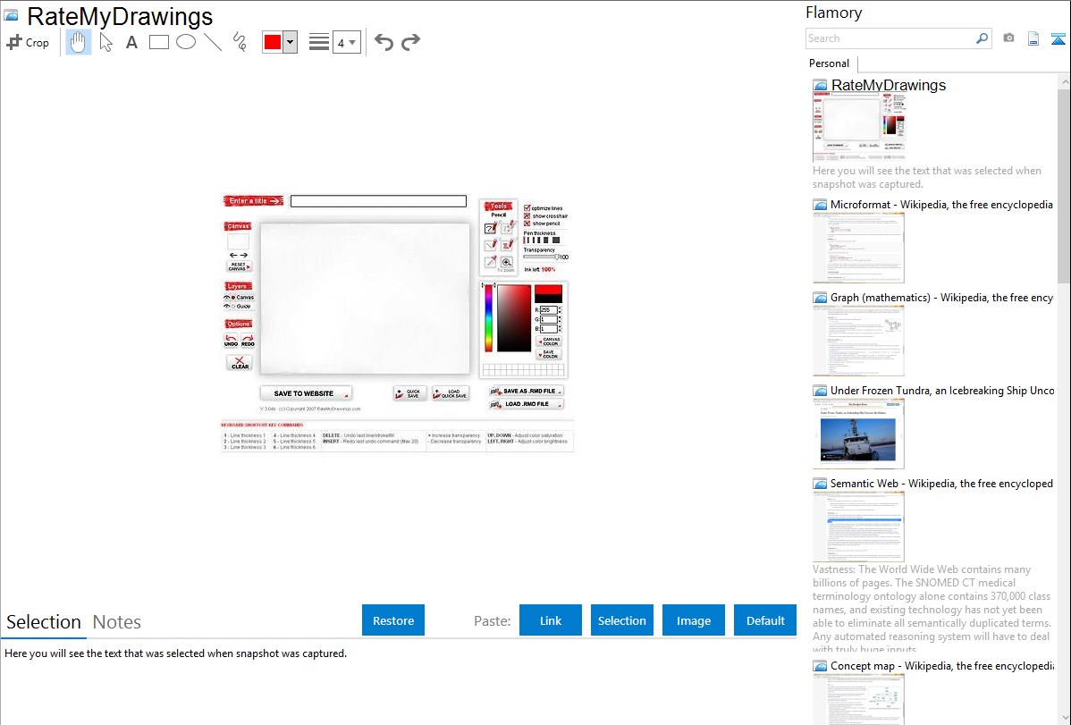 Flamory helps you capture and store screenshots from RateMyDrawings by pressing a single hotkey. It will be saved to a history, so you can continue doing your tasks without interruptions. Later, you can edit the screenshot: crop, resize, add labels and highlights. After that, you can paste the screenshot into any other document or e-mail message.