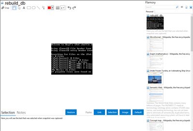Flamory helps you capture and store screenshots from rebuild_db by pressing a single hotkey. It will be saved to a history, so you can continue doing your tasks without interruptions. Later, you can edit the screenshot: crop, resize, add labels and highlights. After that, you can paste the screenshot into any other document or e-mail message.