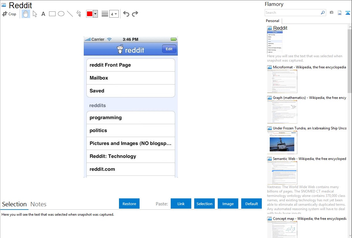 Flamory helps you capture and store screenshots from Reddit by pressing a single hotkey. It will be saved to a history, so you can continue doing your tasks without interruptions. Later, you can edit the screenshot: crop, resize, add labels and highlights. After that, you can paste the screenshot into any other document or e-mail message.