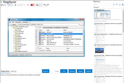 Flamory helps you capture and store screenshots from RegAlyzer by pressing a single hotkey. It will be saved to a history, so you can continue doing your tasks without interruptions. Later, you can edit the screenshot: crop, resize, add labels and highlights. After that, you can paste the screenshot into any other document or e-mail message.