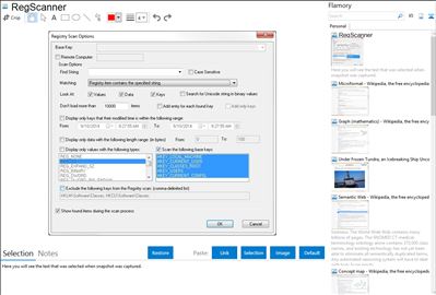 Flamory helps you capture and store screenshots from RegScanner by pressing a single hotkey. It will be saved to a history, so you can continue doing your tasks without interruptions. Later, you can edit the screenshot: crop, resize, add labels and highlights. After that, you can paste the screenshot into any other document or e-mail message.