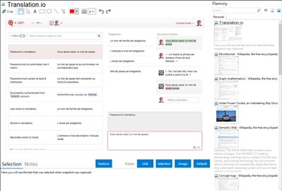 Flamory helps you capture and store screenshots from Translation.io by pressing a single hotkey. It will be saved to a history, so you can continue doing your tasks without interruptions. Later, you can edit the screenshot: crop, resize, add labels and highlights. After that, you can paste the screenshot into any other document or e-mail message.