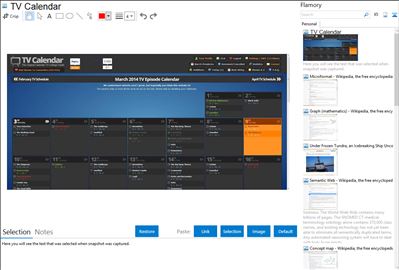 Flamory helps you capture and store screenshots from TV Calendar by pressing a single hotkey. It will be saved to a history, so you can continue doing your tasks without interruptions. Later, you can edit the screenshot: crop, resize, add labels and highlights. After that, you can paste the screenshot into any other document or e-mail message.